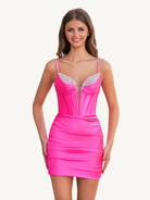 V Neck Satin Bodycon Short Homecoming Dresses With Beading