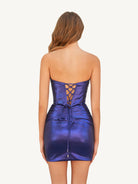 Strapless Metallic Ruched Short Homecoming Dresses With Keyhole