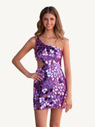 Shine from every angle in the Jaliyah One-Shoulder Short Homecoming Dress. Covered in dazzling diamond-shaped sequins that reflect light like cut glass mirrors, this dress brings a bold, fashion-forward edge to your look. The chic one-shoulder neckline and edgy cutout details add modern sophistication, while the flattering A-line silhouette ensures comfort and confidence all night long. Available in bold hues like green, red, purple, and black, this stunning mini dress adapts effortlessly to every occasion where glamour is a must. Whether you're getting ready for homecoming, dressing up for a cocktail evening, or heading out to a party, Jaliyah is your go-to statement piece.