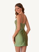 Spaghetti Straps Bodycon Satin Sequined Homecoming Dresses With Appliques