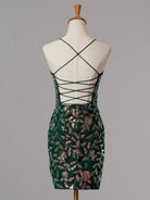 Green V Neck Bodycon Sequins Homecoming Dress